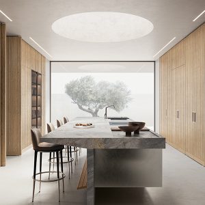 In elegant balance, the duality of the island is a platform for a cook’s inventiveness and passion, and a space made for the pleasure of eating together, where guests remain connected and intrinsic to the experience.