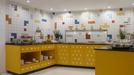With the aim of blending the spirit of the Ibis Styles brand with the city’s cultural identity, the hotel takes inspiration from Tbilisi’s stained-glass heritage – a motif often seen in historic staircases and carved balconies.