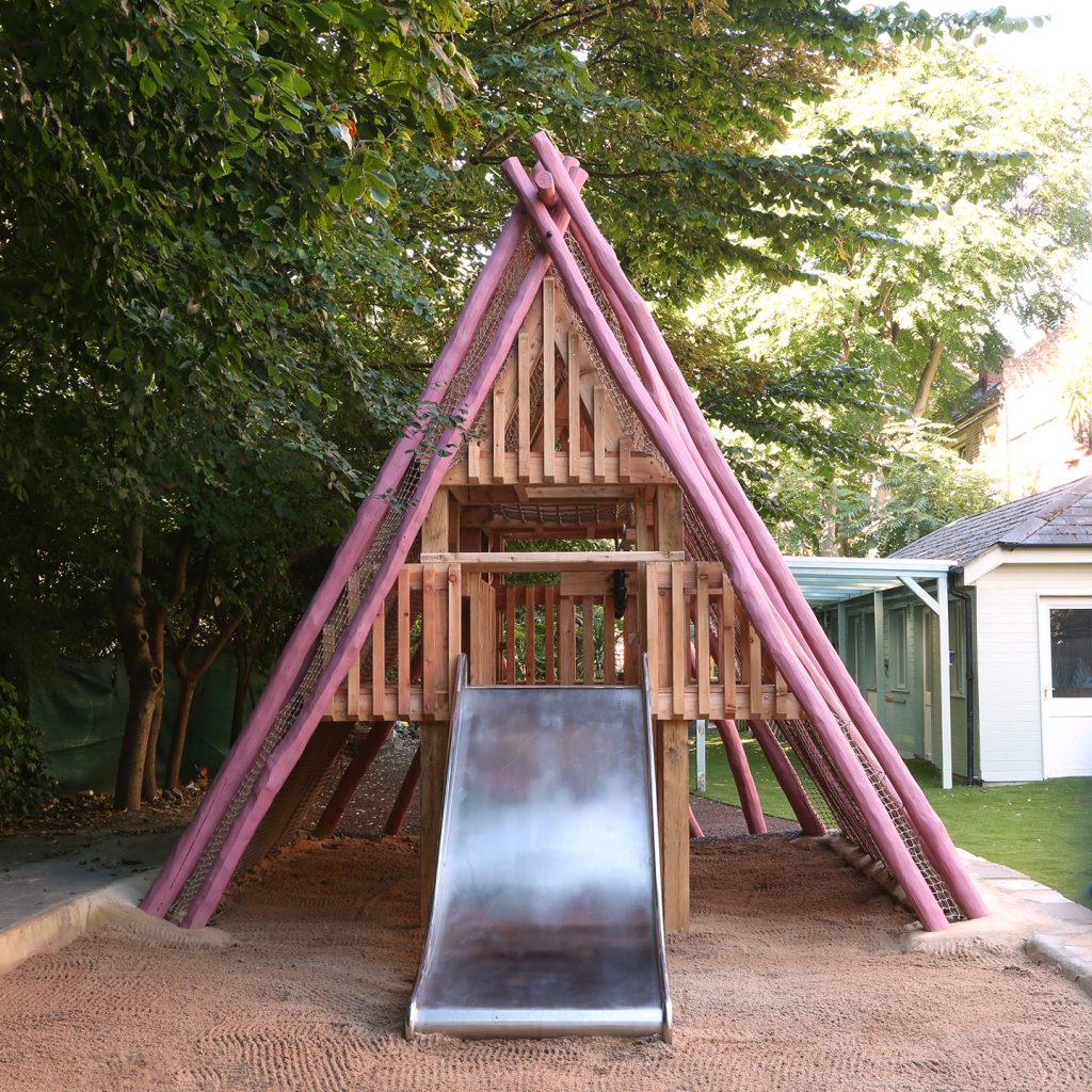 Nestled in a secret garden, this project combines sustainable design with a forest school concept. The design includes a modular classroom and a towering 5-metre forest play structure, all carefully installed to preserve the existing trees, creating a harmonious blend of nature and education.