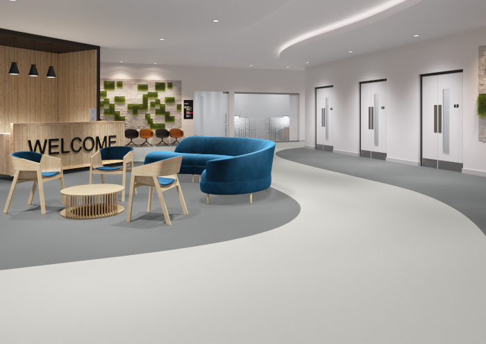 Making commercial spaces quieter with 19dB of impact noise reduction, Optimise 70 acoustic sheet vinyl is made for heavy duty …